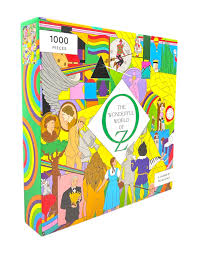 1000-PIECE PUZZLE: The 1000-piece puzzle reimagines the wonderful world of Oz, with Dorothy, the tin man, the scarecrow, the lion, and a host of fabulous characters associated with the book, the film, and their cultural impact.